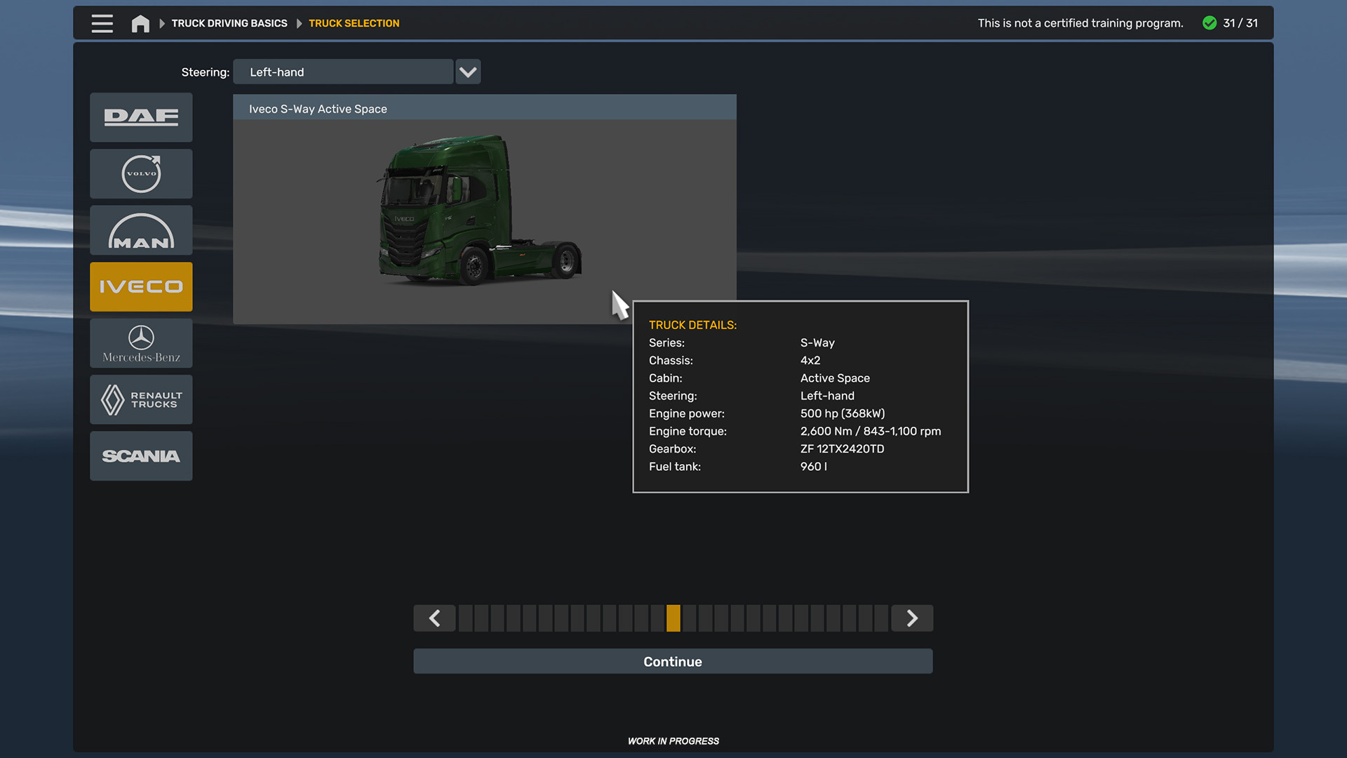 - Volvo FH シリーズ 5、Volvo FH シリーズ 6、Iveco S-Way がドライビング アカデミーに追加されました