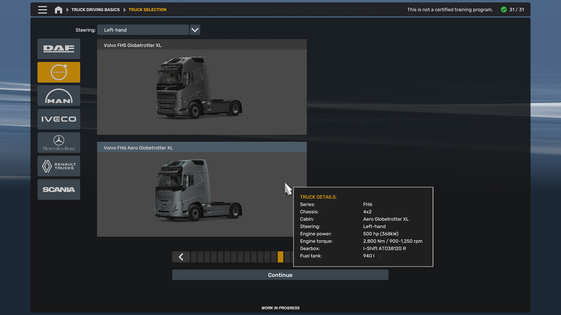 ボルボ FH シリーズ 5、ボルボ FH シリーズ 6、および Iveco S-Way がドライビング アカデミーに追加され、トラフィック コーン キャビン アクセサリやトラックの塗装などの新しい報酬も得られます。