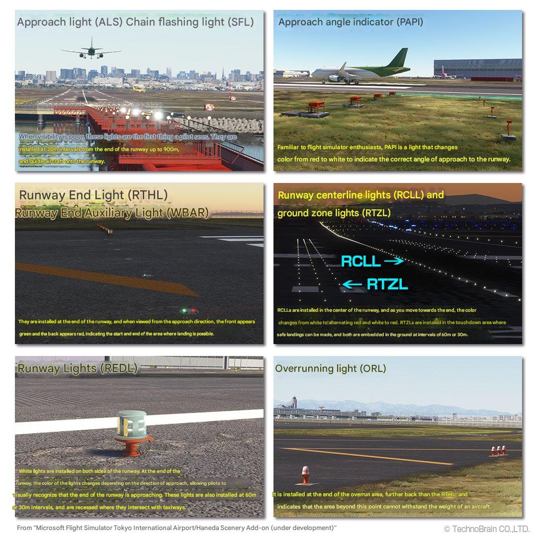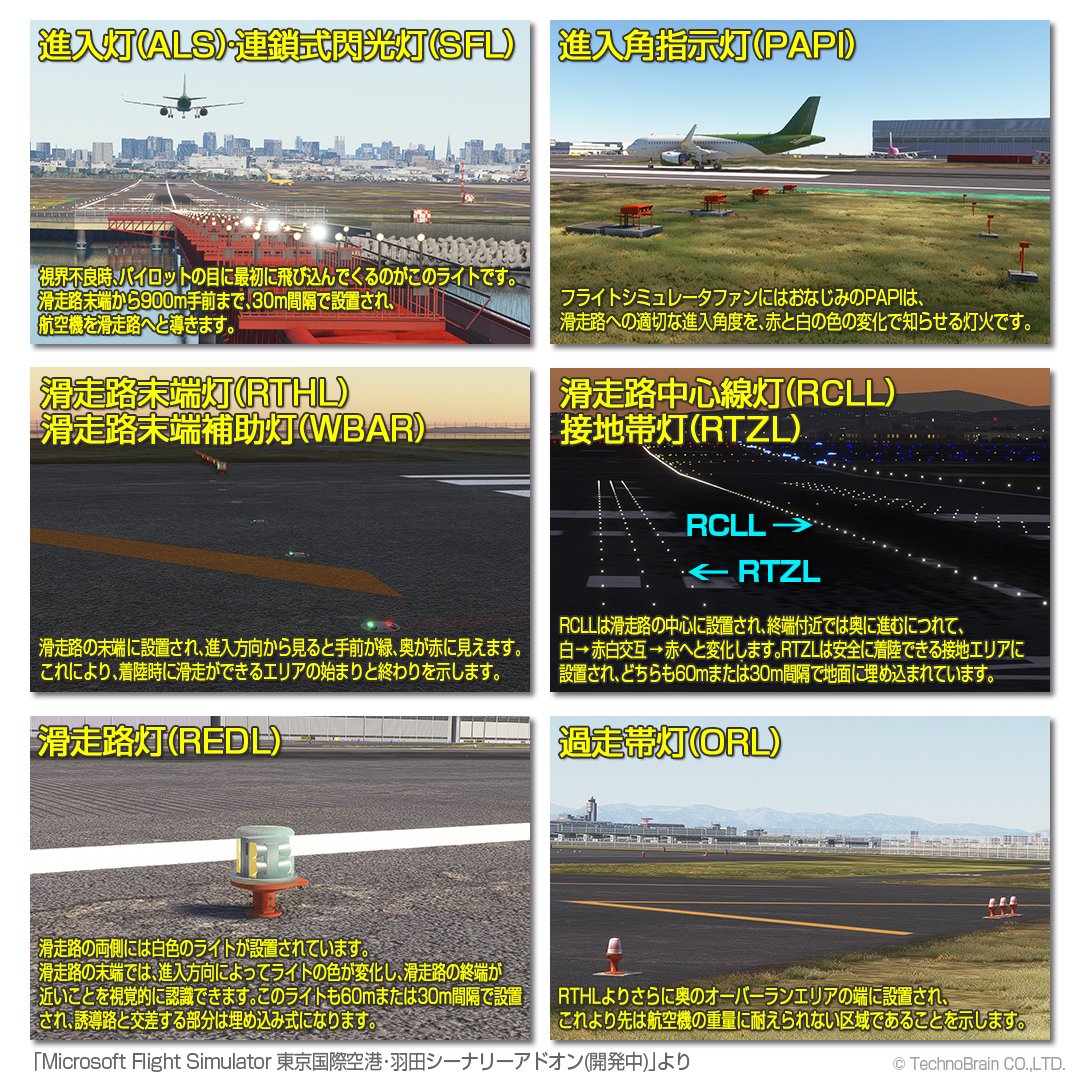 テクノブレイン解放されたMicrosoft Flight Simulator 向けに開発予定の東京羽田国際空港 (RJTT) の照明システムを示す小さなスクリーンショットのギャラリー。